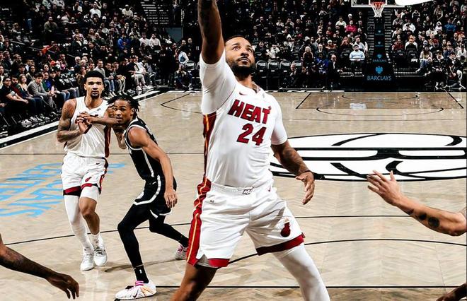 阿德巴约打铁怒抢17板,鲍威尔24分韦尔22+12+4封盖,热火擒篮网