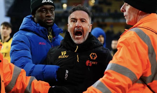 北京时间10月26日,英超第9轮,狼队2-3伯恩利。狼队主帅佩雷拉赛后因与主场球迷争吵,被球员强行拉开。